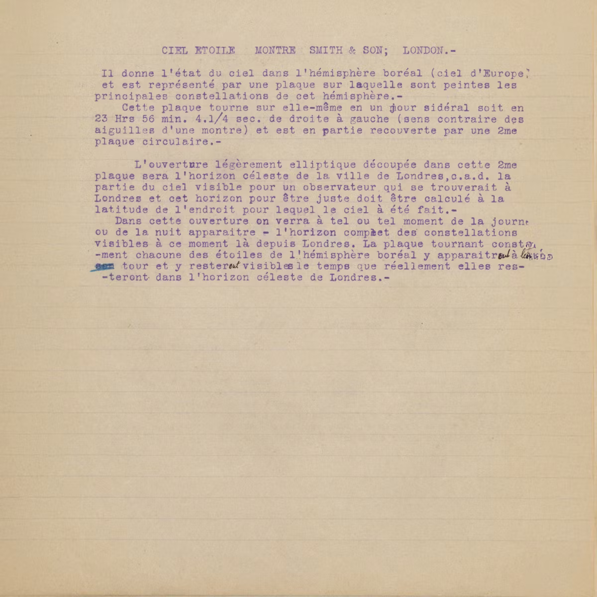 The project would take seven years to complete and required some of the best minds from within and outside the brand. A note in AP's archives, filed January 26, 1915, gives a frame of reference for possible unique astronomical complications "falling under the SSS request" – or S. Smith & Sons.